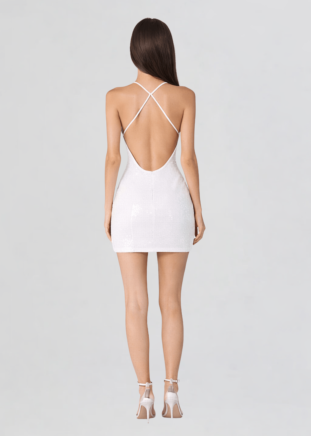Upgrade your wardrobe with our Drisse Mini Dress. This best-selling body con dress is designed with stunning sequins, backless detailing, and a keyhole detail on the bust. Made with stretch fabric, this dress is perfect for any occasion. Dry clean only for long-lasting wear.