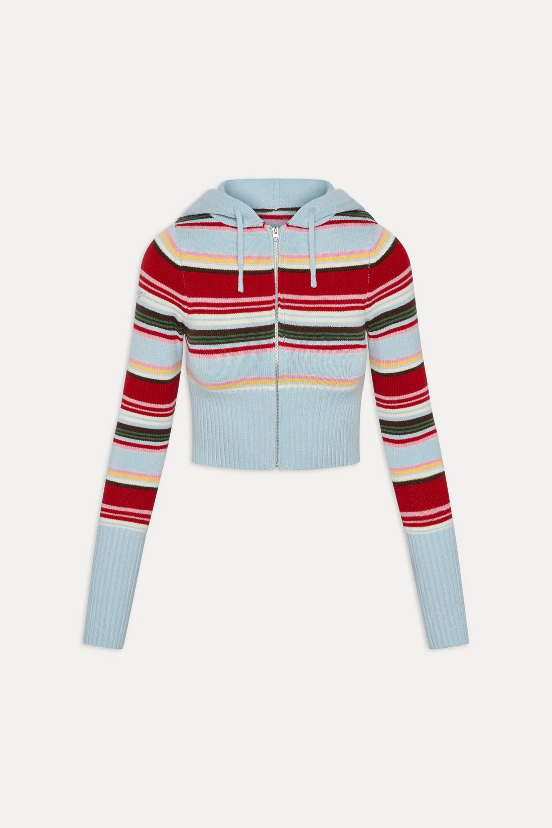 Aimee Zip Up Knit Hoodie in Ocean Ave