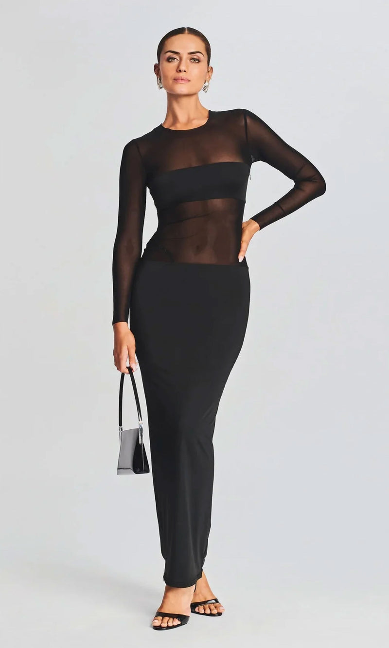 Eva Mesh Maxi Dress in Burgundy